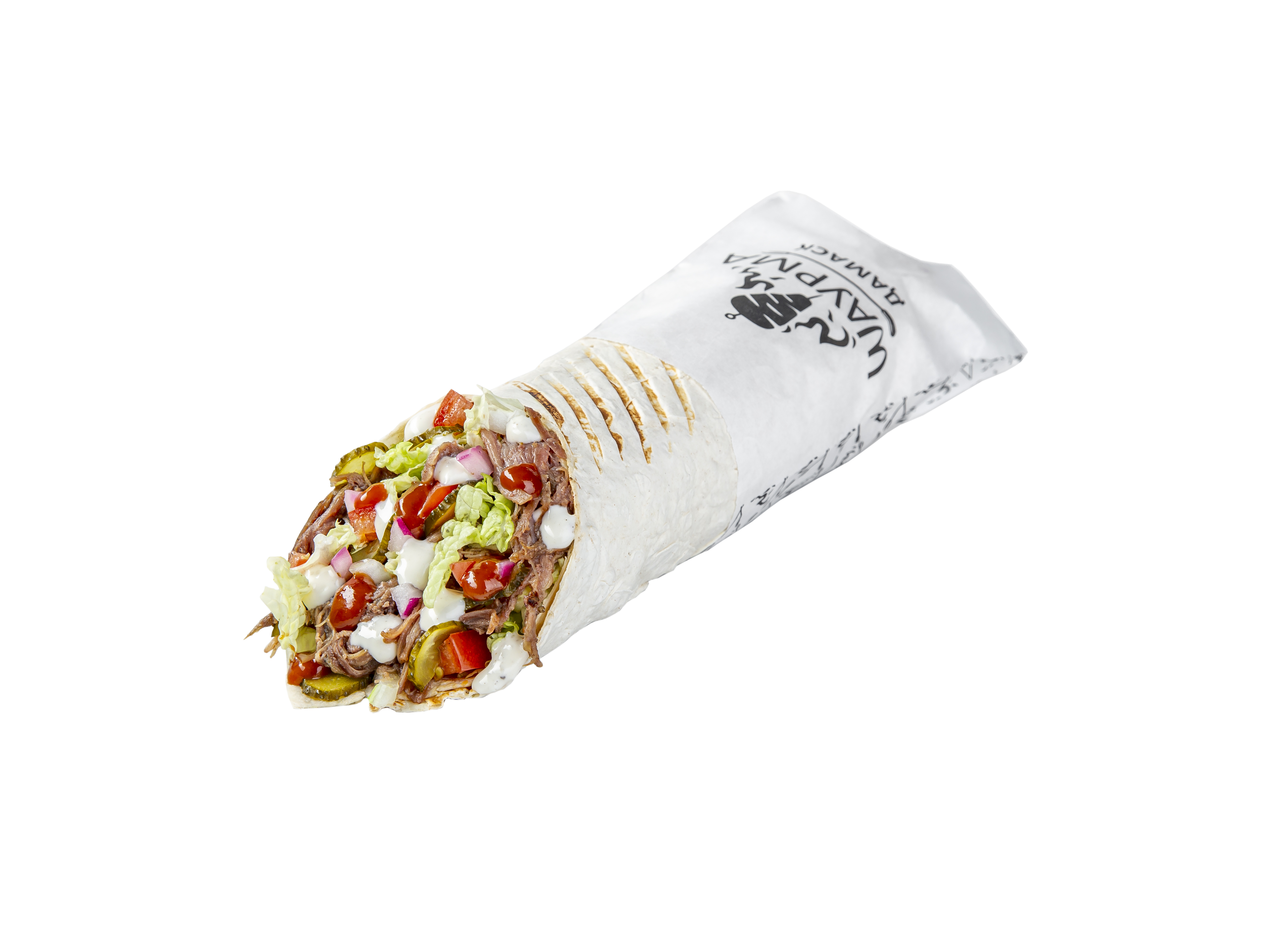 Сочное говяжье мясо томленное в печи, свежие овощи, фирменные соусы.
